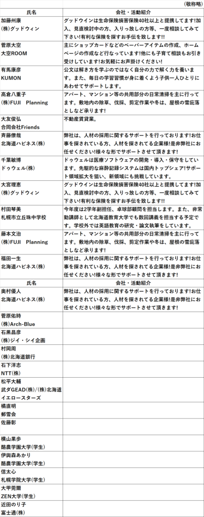 1番テーブルの集合写真を撮り忘れており写真掲載できておりません。申し訳ありません。